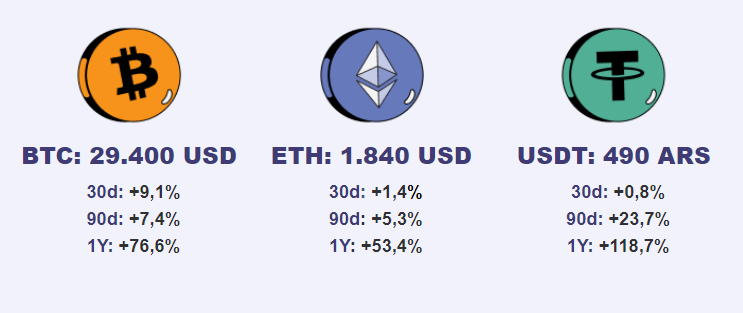 - ⚫ BlackRock presentó una solicitud para lanzar un ETF (Exchange Traded Fund – Fondo Cotizado en Bosa) de bitcoin, lo que impulsó el precio del BTC por encima de los 28 mil dólares.
